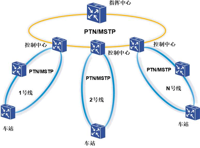 传输系统作为专用通信系统的基础网络,为其它通信子系统提供可靠的、冗余的、灵活的信道,采用MSTP或PTN组网方案;