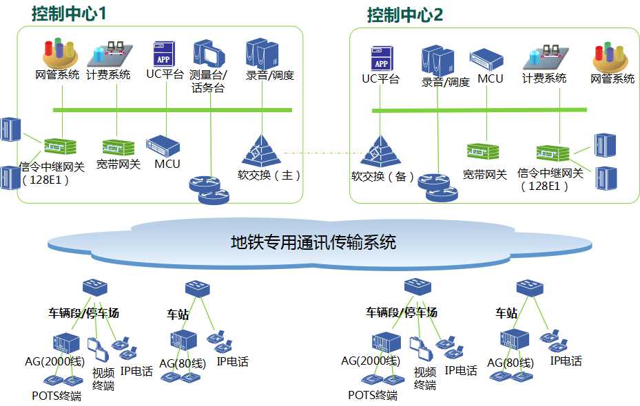 公务电话系统主要为市域铁路运营、管理、维修等部门的工作人员提供服务,采用软交换融合通信解决方案;